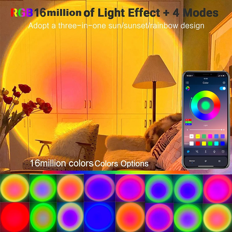 Elevate your bedroom décor and photography experience with our Sunset Night Lamp Projector. This innovative projector night light creates stunning sunset-like atmospheres with a range of vibrant RGB colors. Controlled effortlessly through an app, you can customize and adjust the lighting to suit your mood or capture the perfect shot. Transform your space into a tranquil haven or a picturesque backdrop for your photography with this versatile LED light. Whether you're looking to enhance your bedroom's ambiance or searching for the ideal gift for photography enthusiasts, this sunset projection lamp is the perfect choice. Don't miss out on this extraordinary lighting solution that adds a touch of artistry to any room and any moment.
